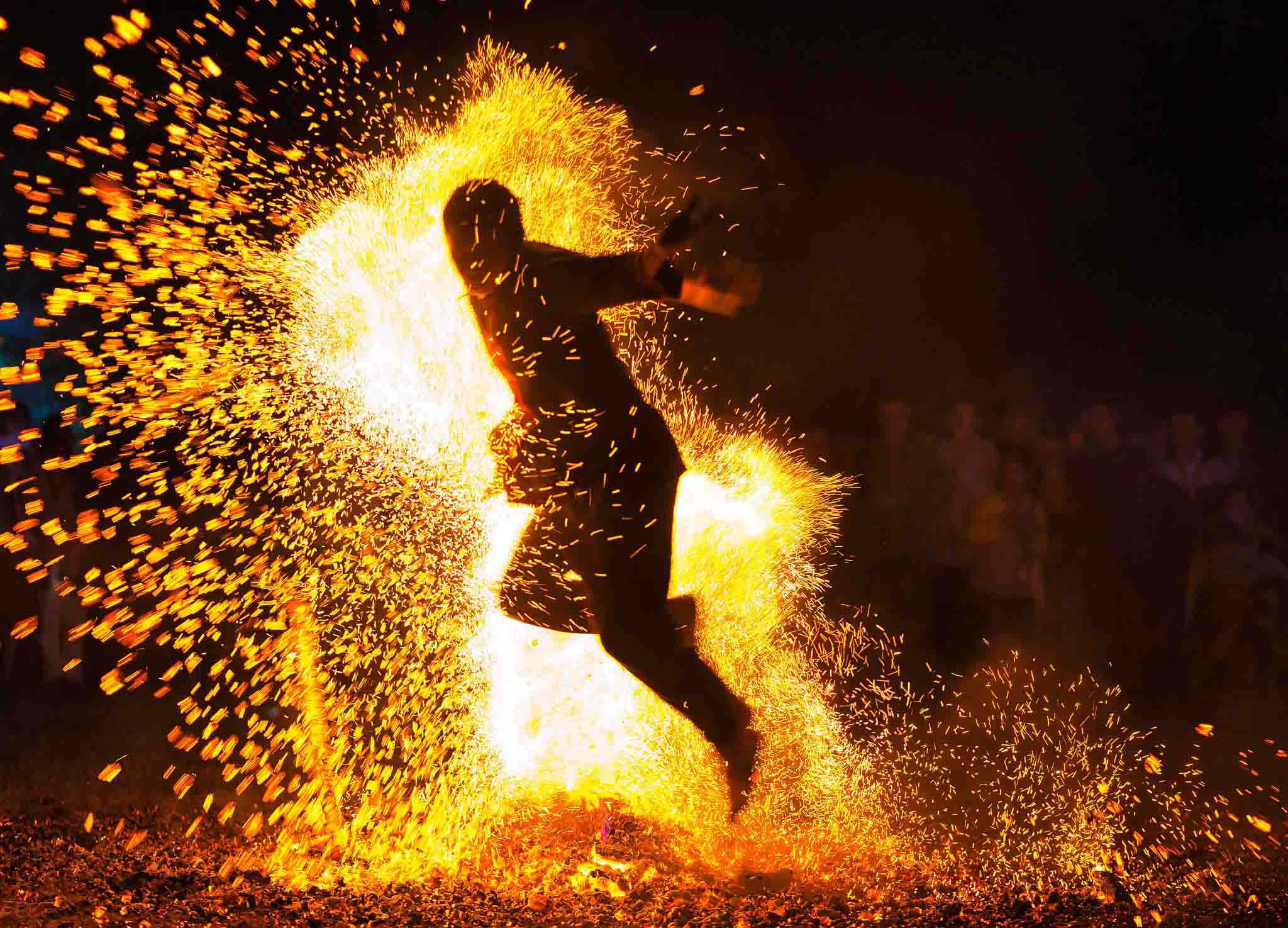 불의 신을 가장 높은 신으로 여기고, 불길이 가정과 공동체에 행운을 가져다준다는 인식에서 비롯돼 불춤 축제가 열릴 때면 마을의 남녀노소가 모두 모인다. 이들 중에 무당이 선발한 마을의 건장한 청년 8~10명이 불춤에 나선다.