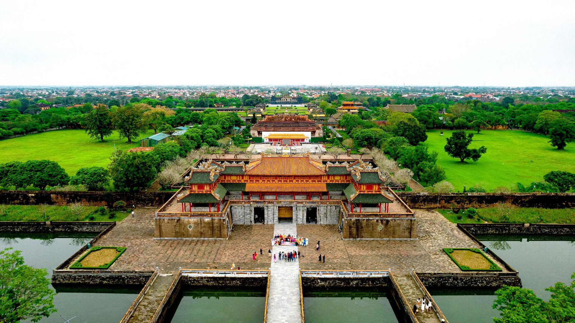 위에서 내려보면 후에 황궁은 유산 도시 한가운데에서 화려하게 빛난다. 사진: 레 호앙