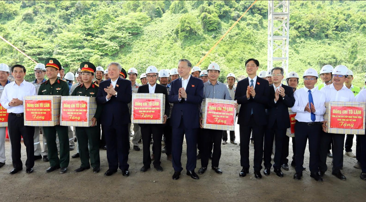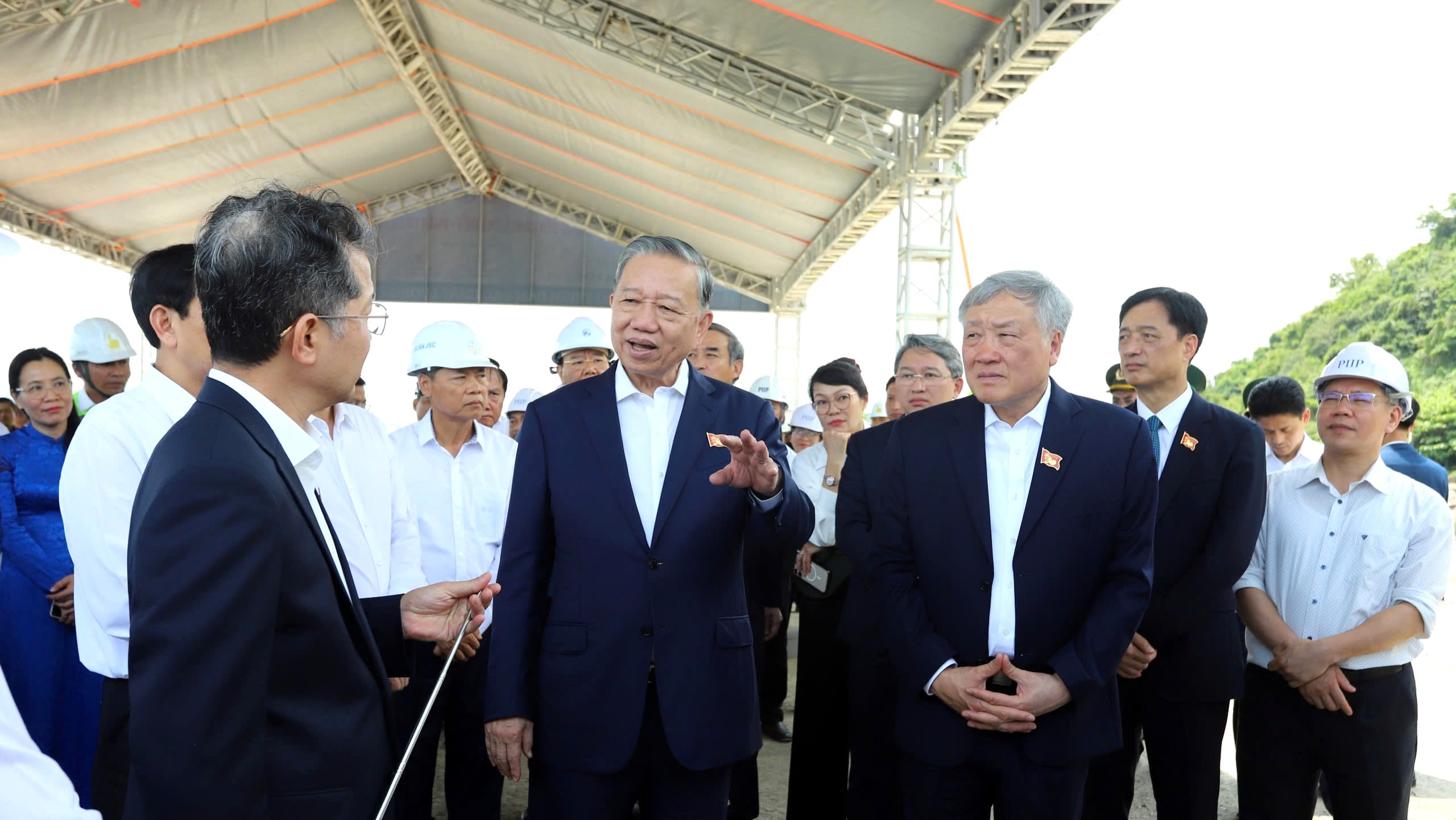 또 럼 당 서기장이 2025년 3월 29일, 중앙 당대표단과 함께 다낭시 리엔찌에우 항만 프로젝트를 현장 점검하는 모습.