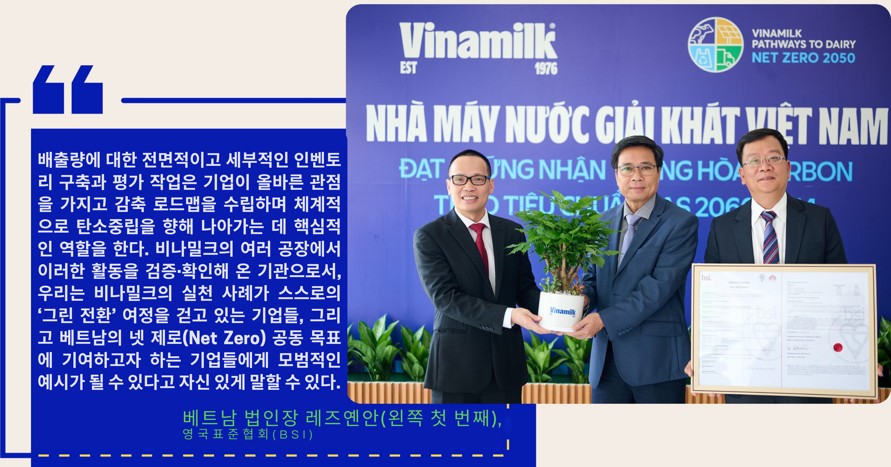 비나밀크 경영진은 2022년에 자사가 베트남 기업 최초로 유제품 산업 글로벌 넷 제로 이니셔티브(Pathways To Dairy Net Zero)에 참여한 배경을 설명했다. 이는 글로벌 목표 달성 과정에서 베트남 유제품 산업의 의지와 결의를 세계에 보여주기 위함이다.