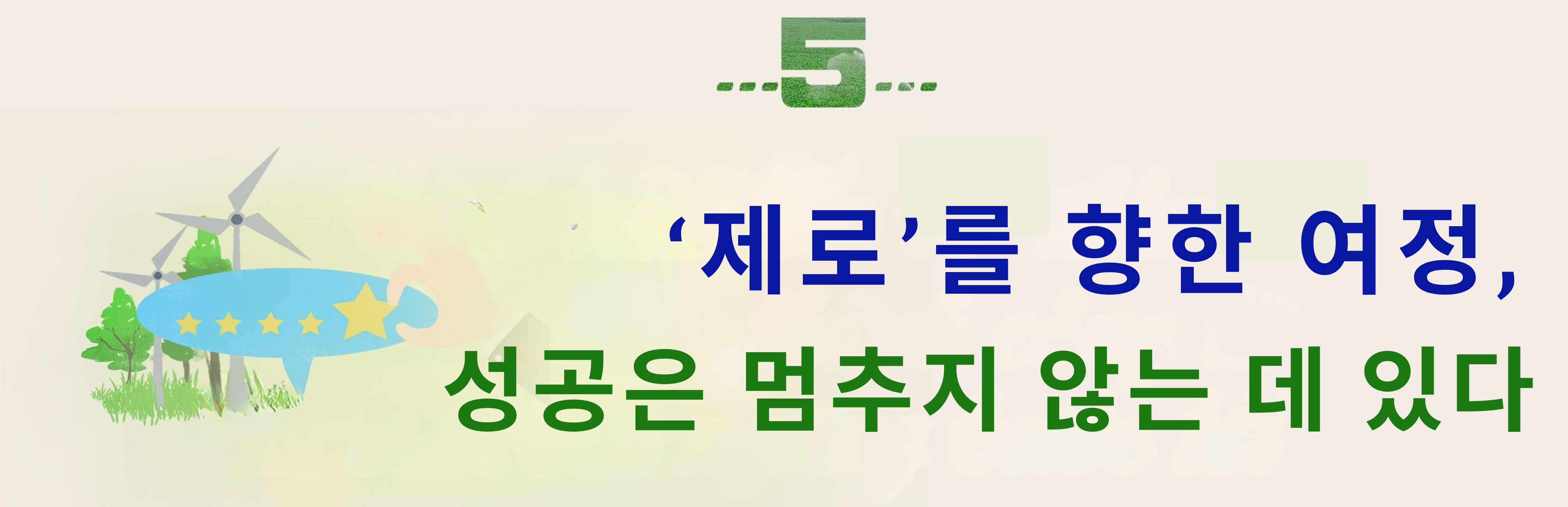 마지막 ‘제로’라는 단어는 단순한 실천이나 혁신을 의미하는 것이 아니라, 도전이 가득한 여정에서 기업이 보여주는 선도적 정신과 담대함을 상징한다. 오직 용기와 헌신을 가진 이들만이 앞으로 나아갈 수 있다.